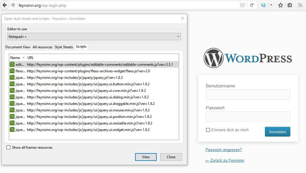 Schlappe 85 JS-Dateien von accordion.js bis xfn.min.js für den Anfang und in den “wp-includes” findest Du noch mal mindestens die doppelte Anzahl von JavaScript Dateien. Alleine der “tinymce” (dat Dingens wo Du die Texte eingibst) kommt sicher mit schlappen gefühlten 3 Dutzend JavaScripts oder mehr daher.